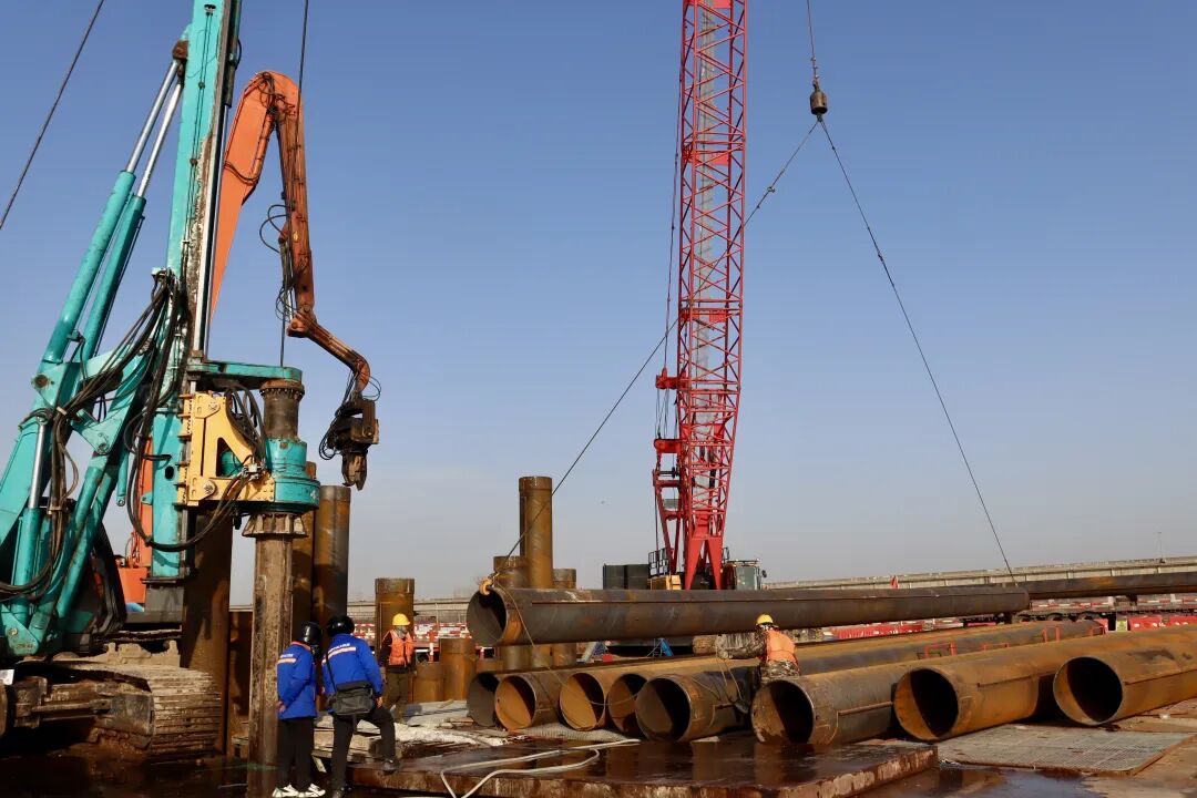 项目副总工程师潘兴介绍,面对黄河调水调沙对施工的影响以及汛期水位变化带来的挑战,项目部科学优化施工组织,动态调整作业方案,采用高性能截齿合金钻头配合大功率旋挖钻机成孔,并辅以优质泥浆循环护壁,有效控制了孔壁稳定性,确保了成孔质量。