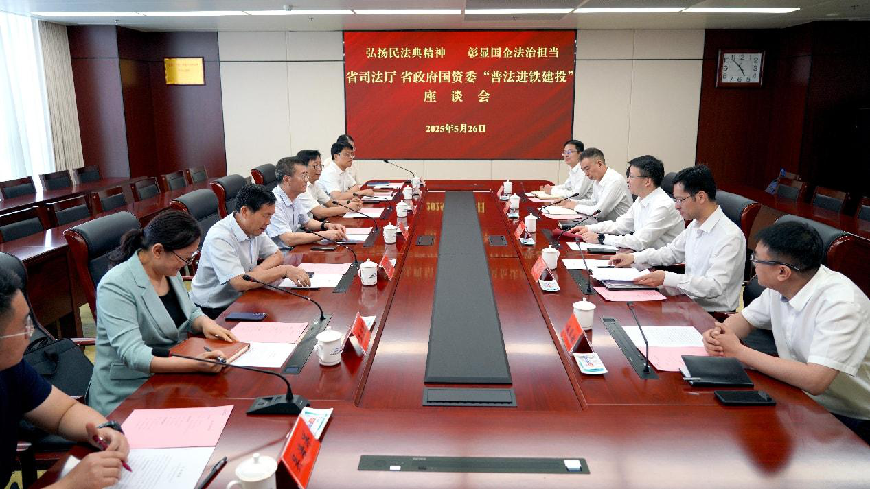 2025年5月是第五个“民法典宣传月”,为深入学习宣传习近平法治思想,全面提高企业诚信守法经营意识和能力,近日,省政府国资委联合省司法厅赴河南铁建投集团开展“送法进企业”活动。省司法厅二级巡视员武宝山,省政府国资委党委委员、副主任刘孟连,河南铁建投集团总经理孙伟良、党委副书记魏俊峰,省司法厅和省政府国资委有关处室以及河南铁建投集团相关部门负责人等参加活动。