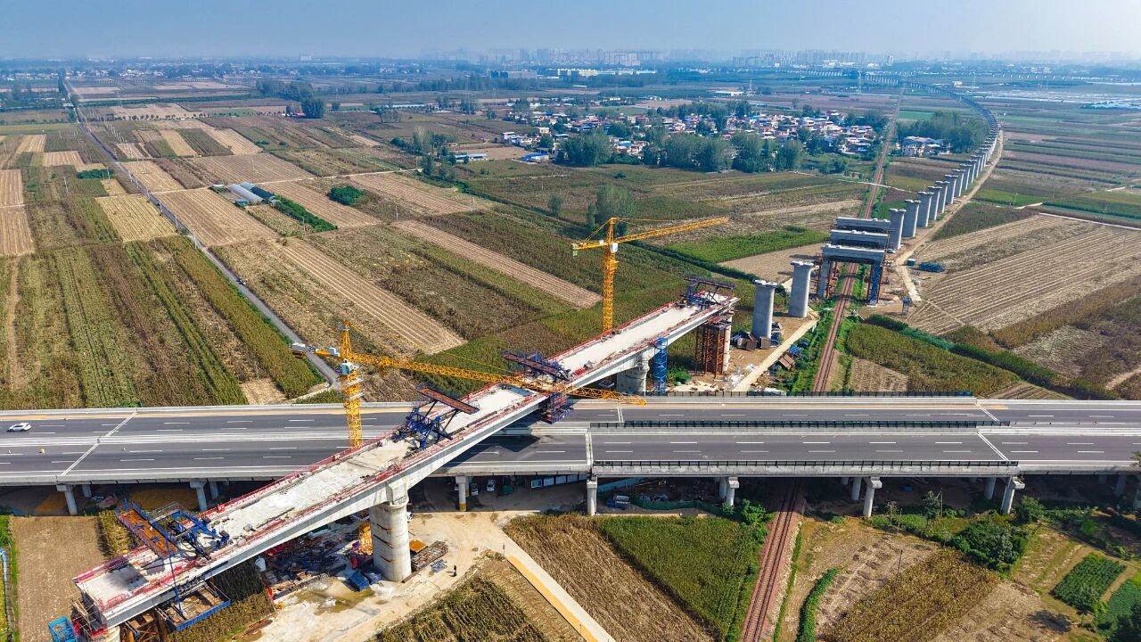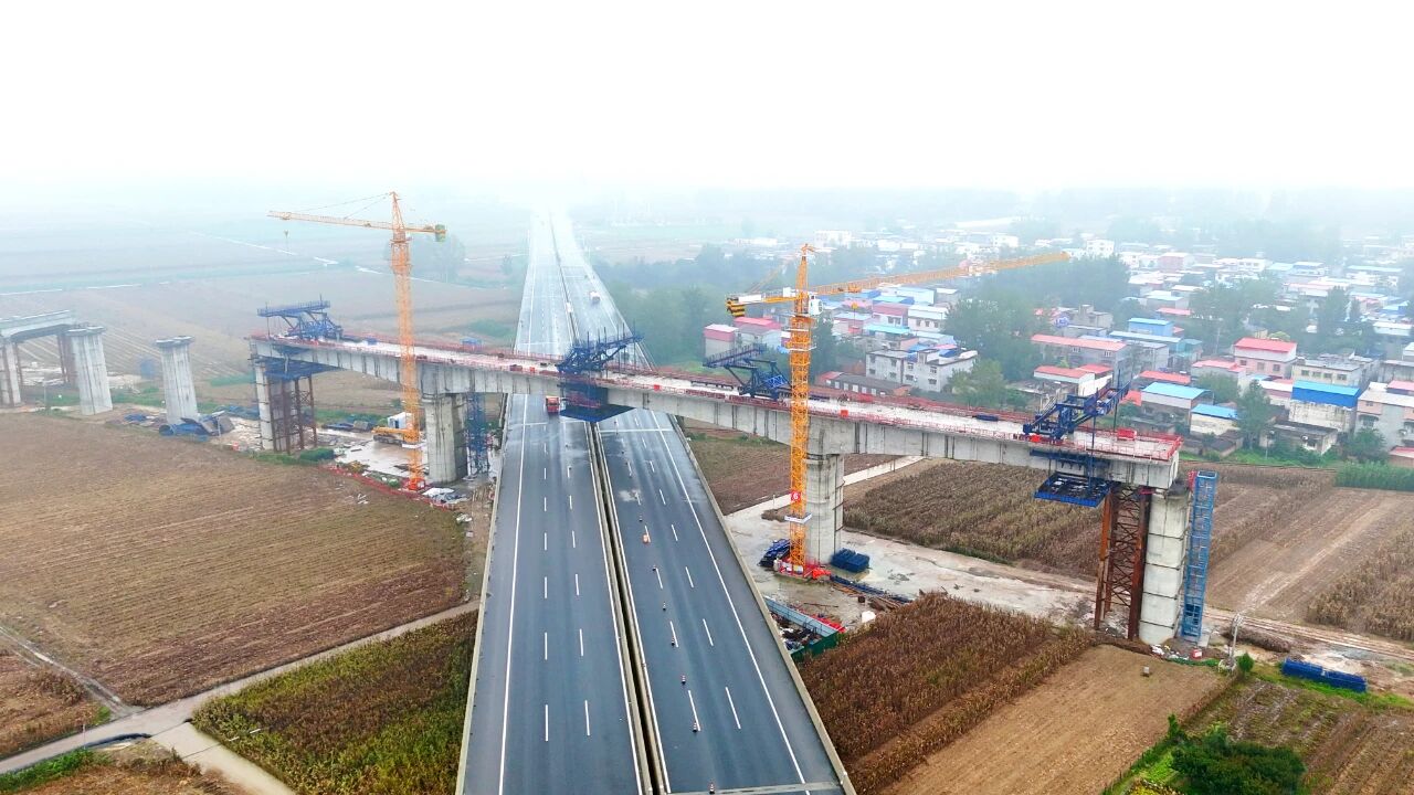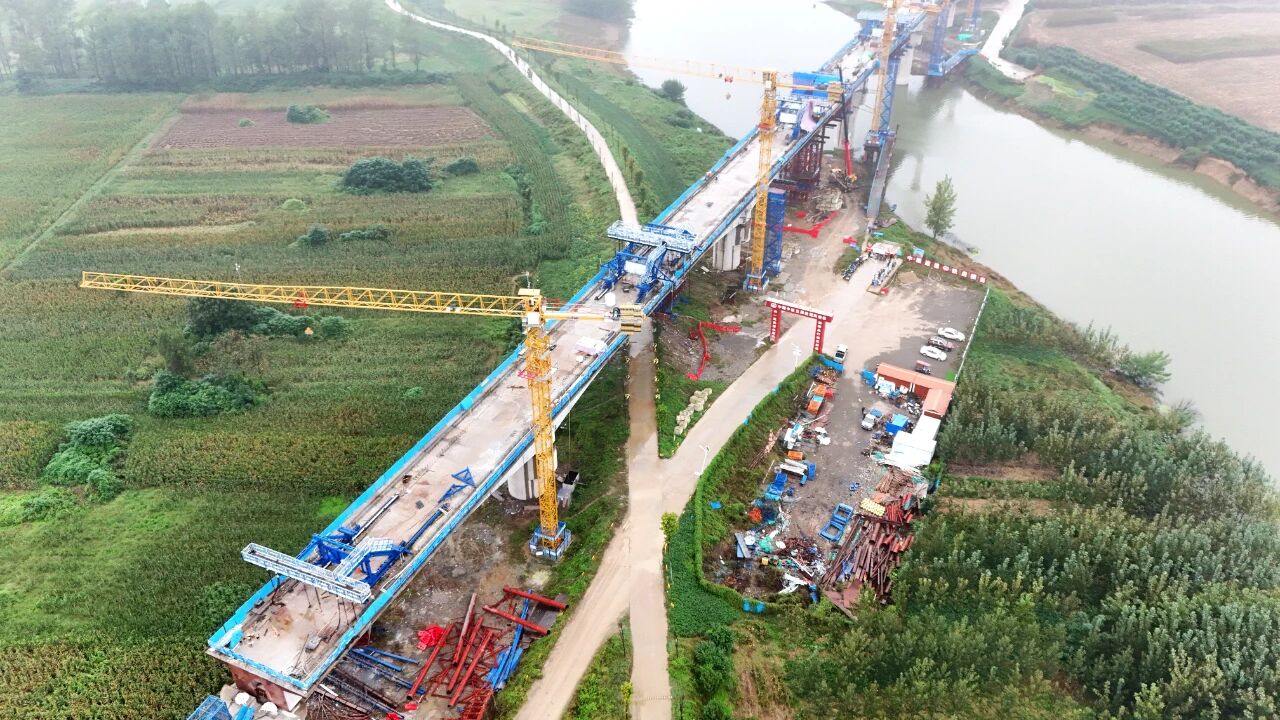 平漯周高铁站前四标跨澧河河堤路及跨Y025乡道连续梁顺利合龙