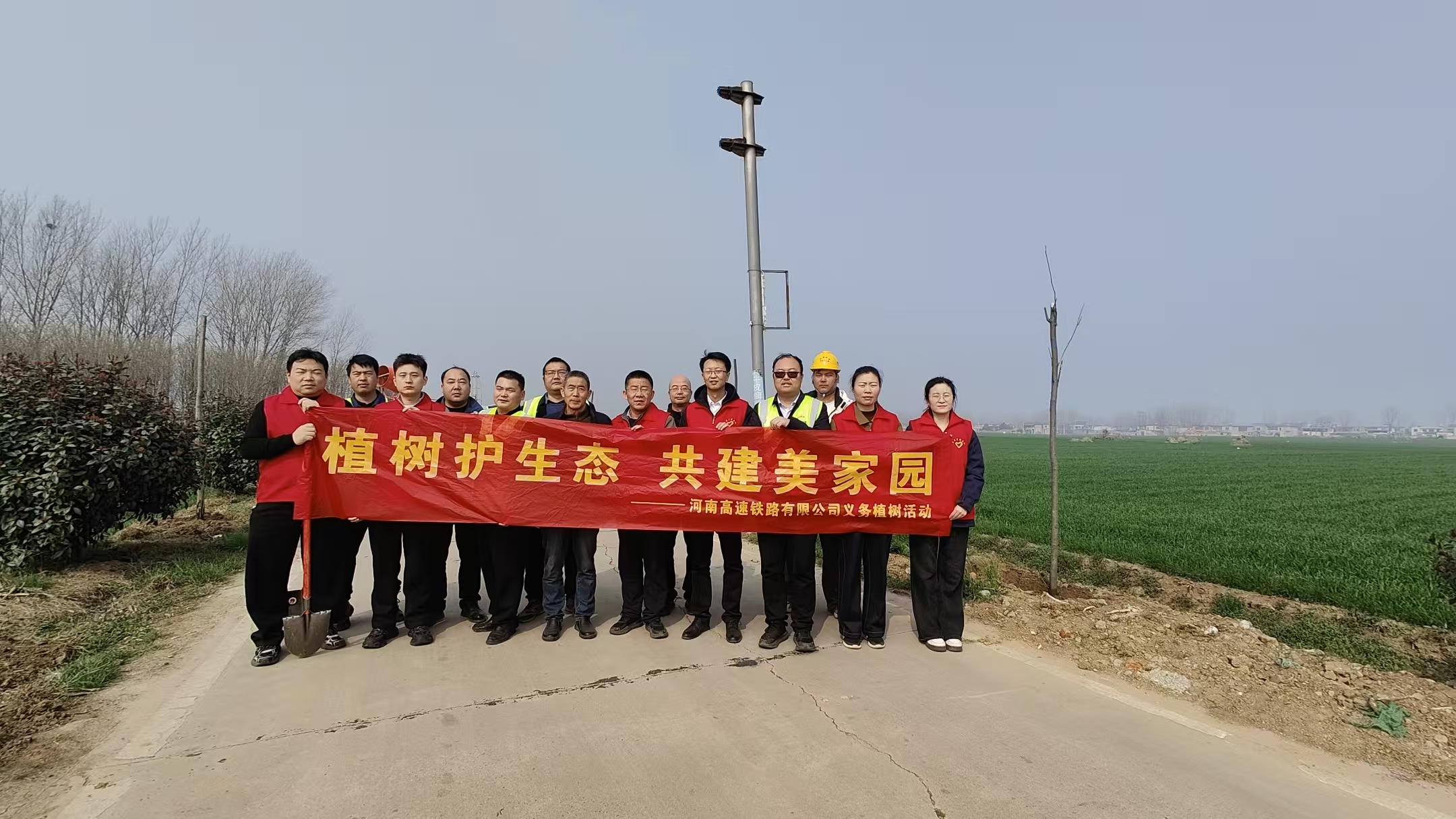 高铁公司与漯河市源汇区平漯周高铁建设指挥部、平漯周高铁站前五标项目部在平漯周高铁沿线联合开展“植树护生态 共建美家园”义务植树活动,以实际行动为铁路沿线添新绿。活动现场,大家分工明确、协作有序,挥锹挖坑、扶苗培土、浇水灌溉,每一个环节都有条不紊。新栽种的树苗迎风挺立,为春日的铁路建设工地增添了勃勃生机。