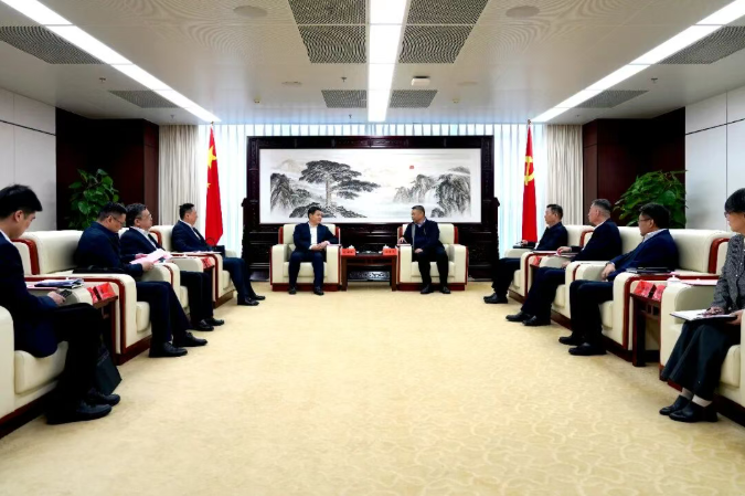 3月17日,河南铁建投集团党委书记、董事长柳建民在集团会见农业银行河南省分行党委书记、行长耿曙明一行,双方围绕进一步深化战略合作、实现共赢发展进行深入交流。